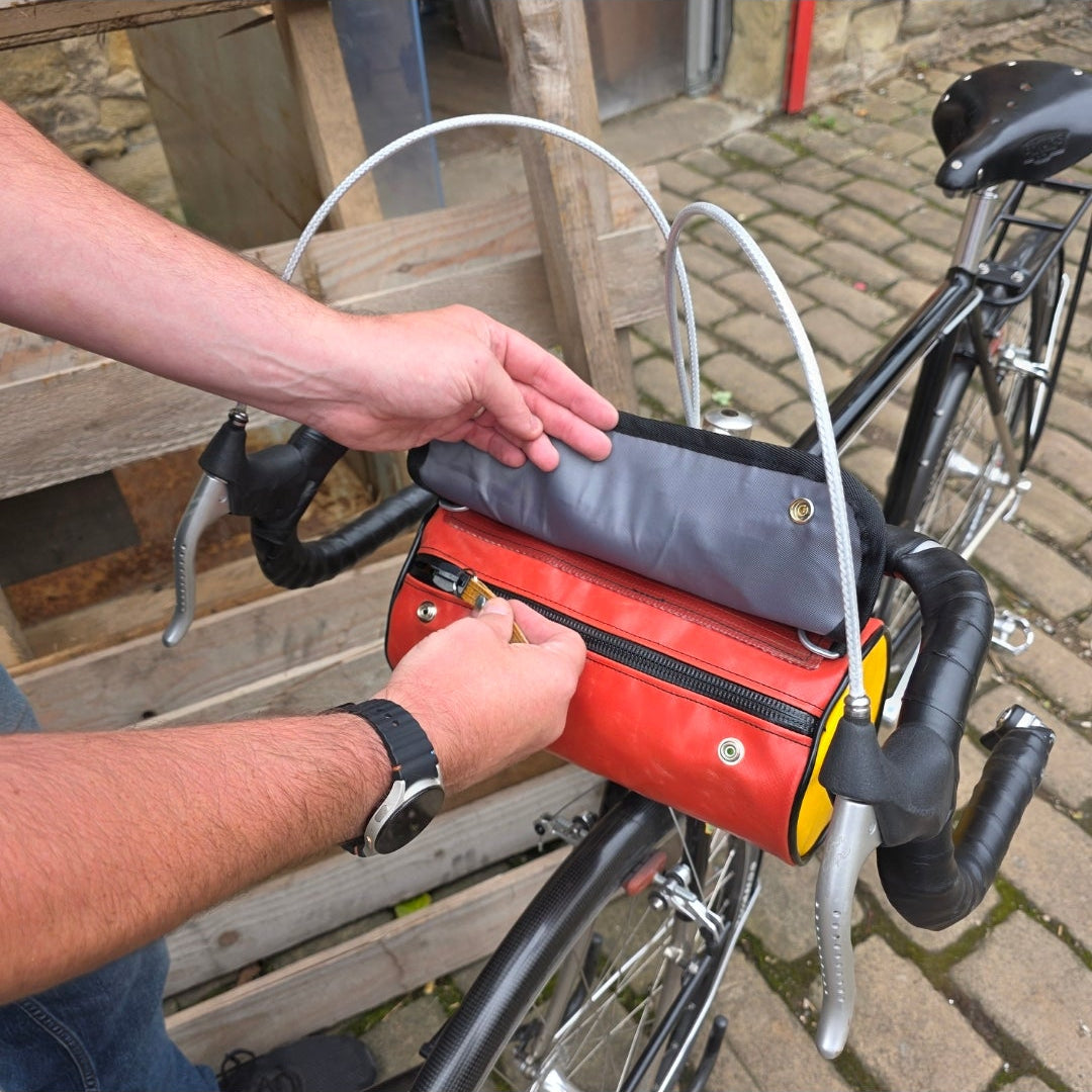 We recycle truck tarp and fire hose into unique bags at our workshop in Nelson, UK. Unique, sustainable, functional and tough.