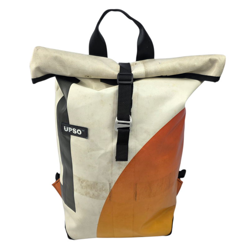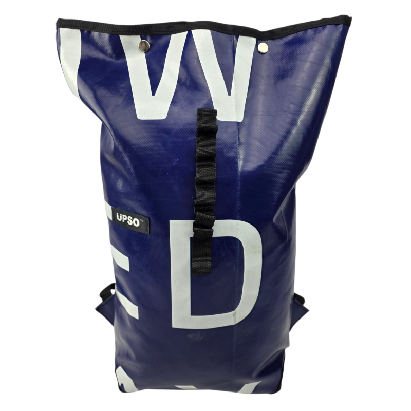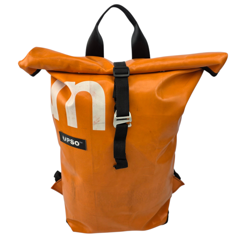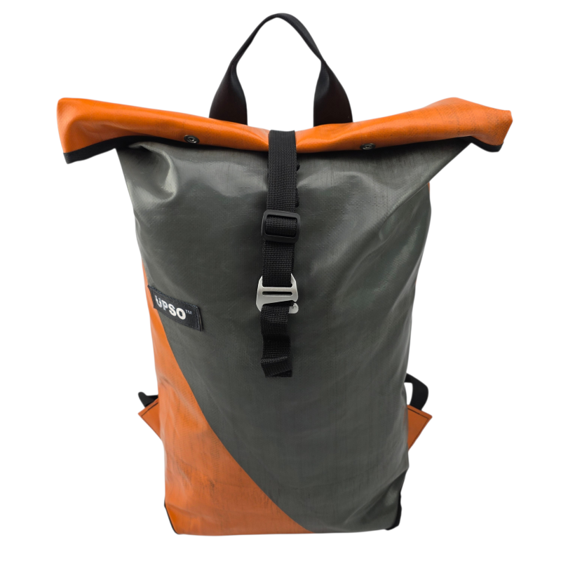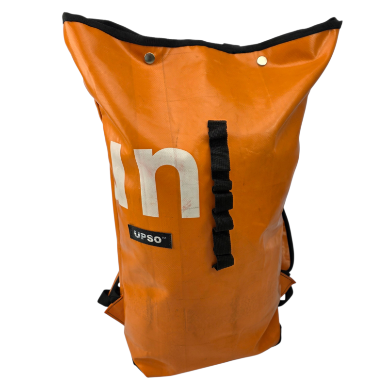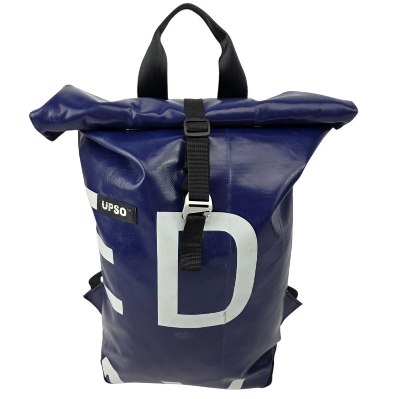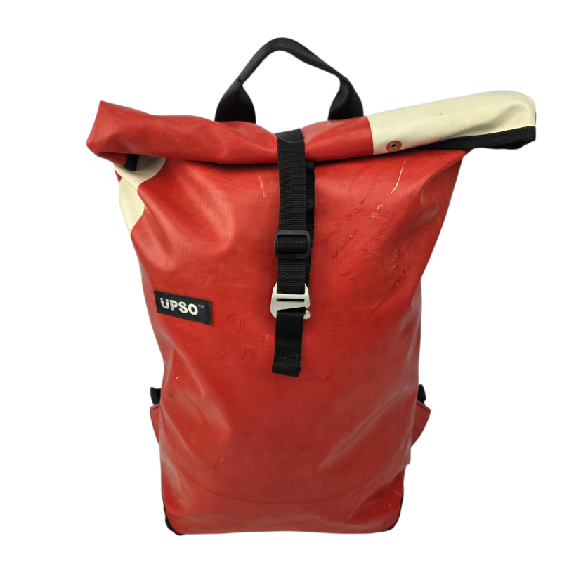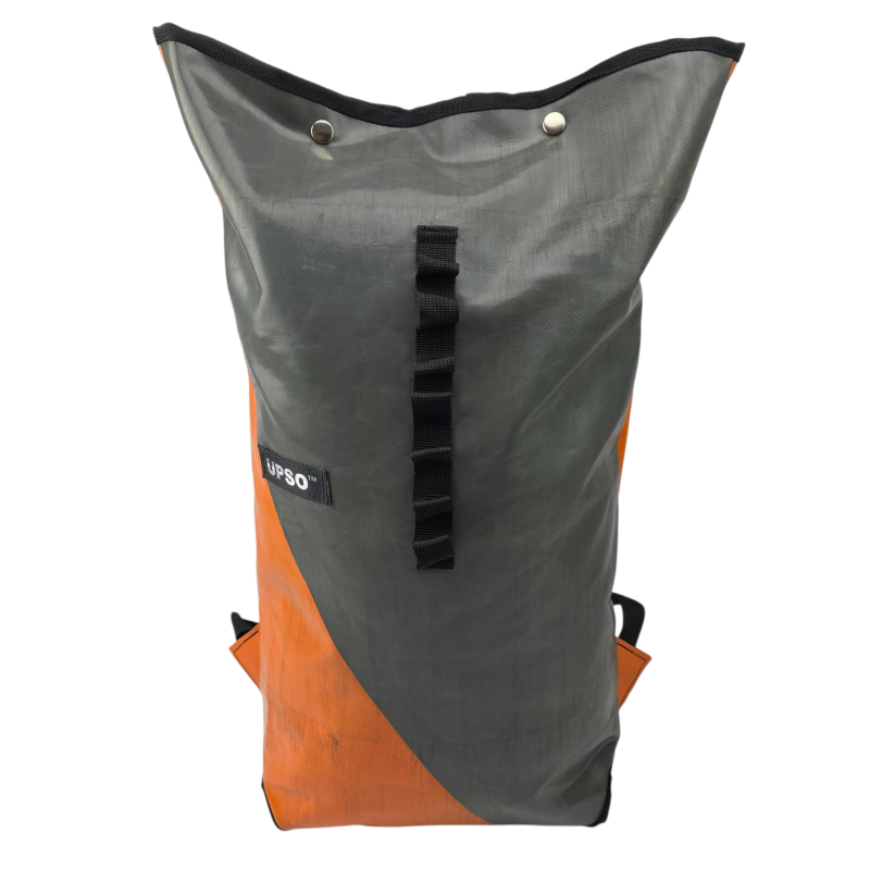 Made from 100% upcycled truck tarp and fire hose, the Burtonwood Backpack is waterproof, ensuring your gear stays dry, while the tarp is super tough.