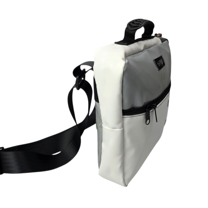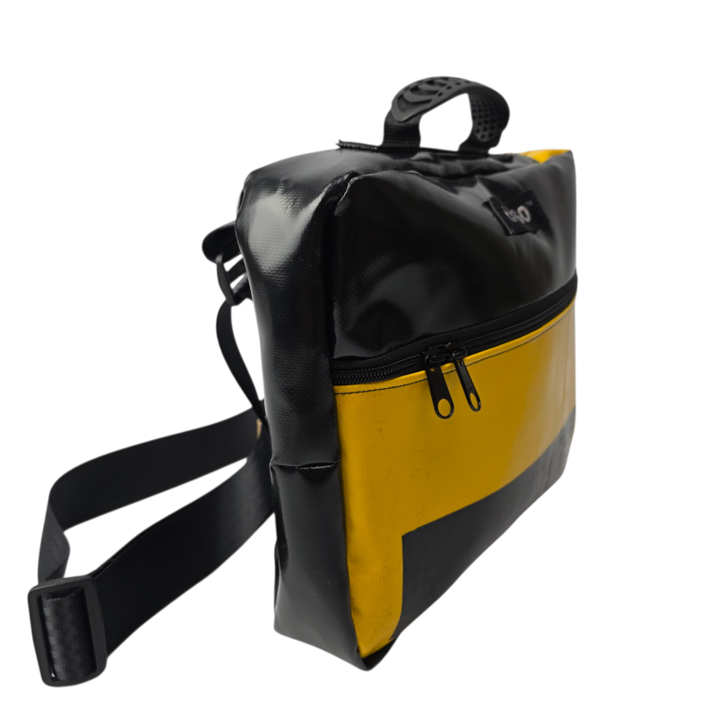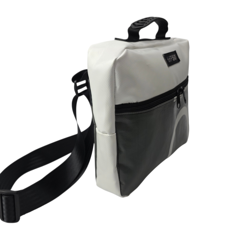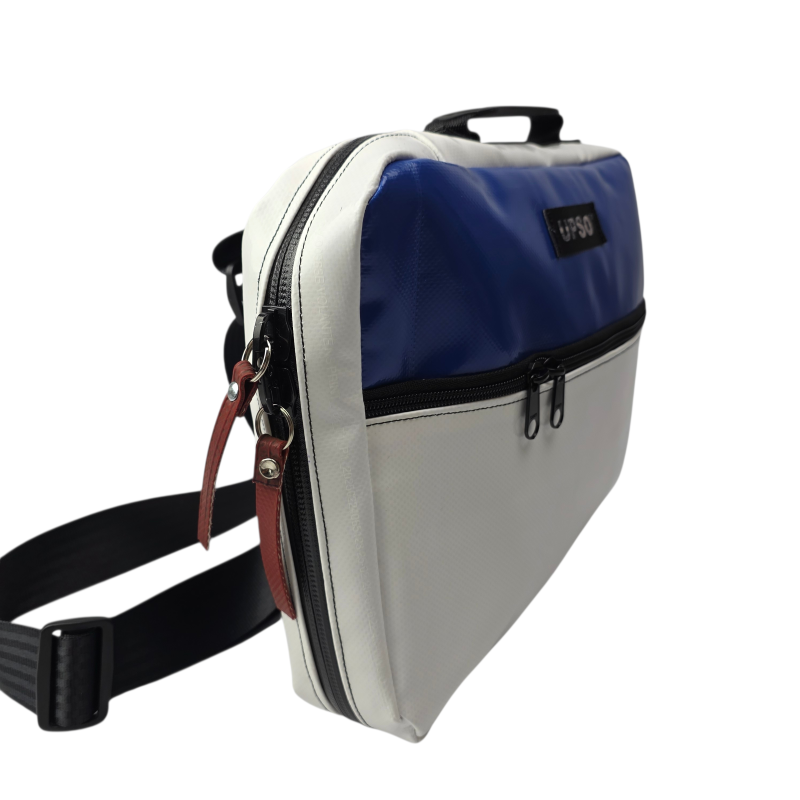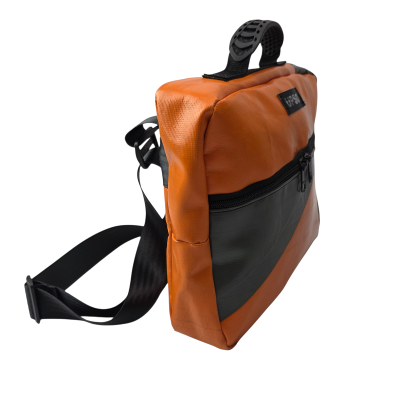 True to UPSO standards, each case is made from upcycled truck tarpaulin, hand-sewn and finished in our Lancashire workshop. Every bag is one of a kind.