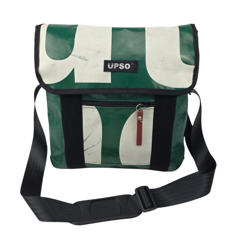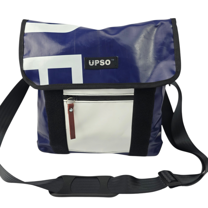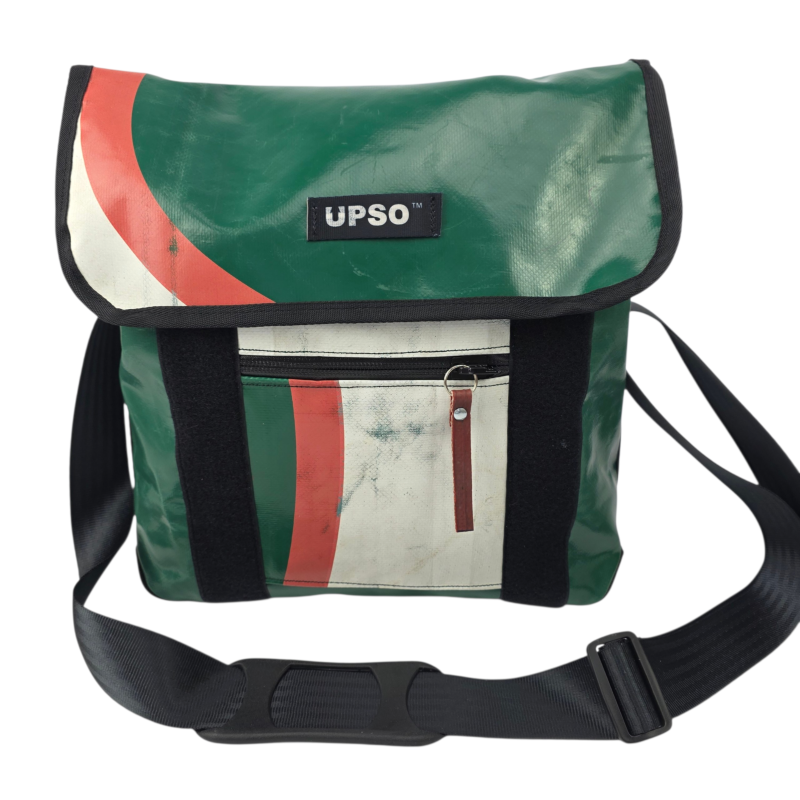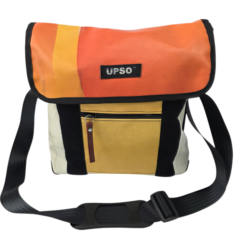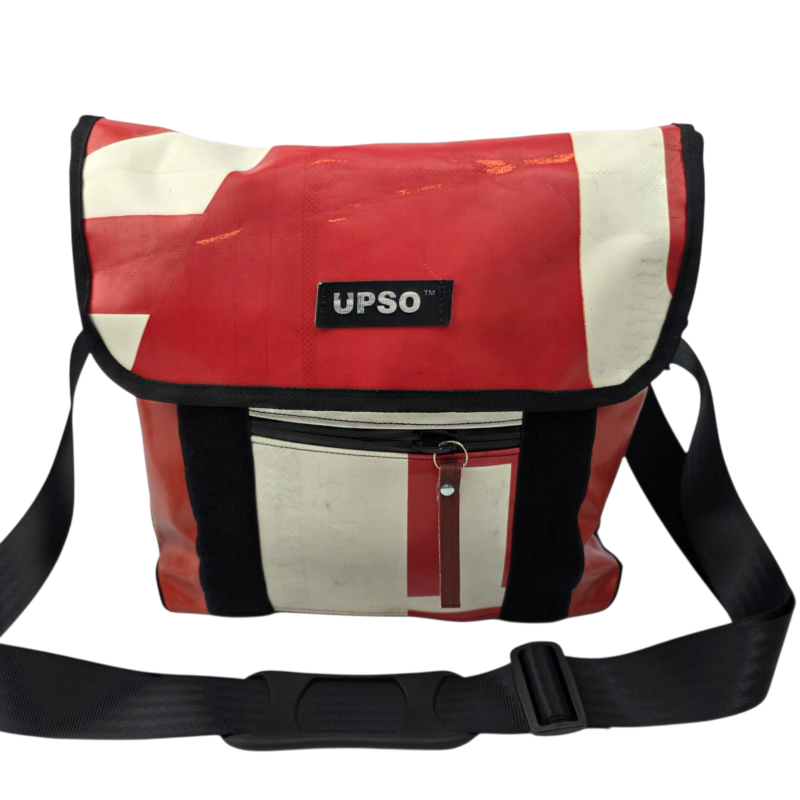 Made from 100% upcycled truck tarp and fire hose, the Medway Messenger bag is waterproof, ensuring your gear stays dry, while the tarp is super tough.