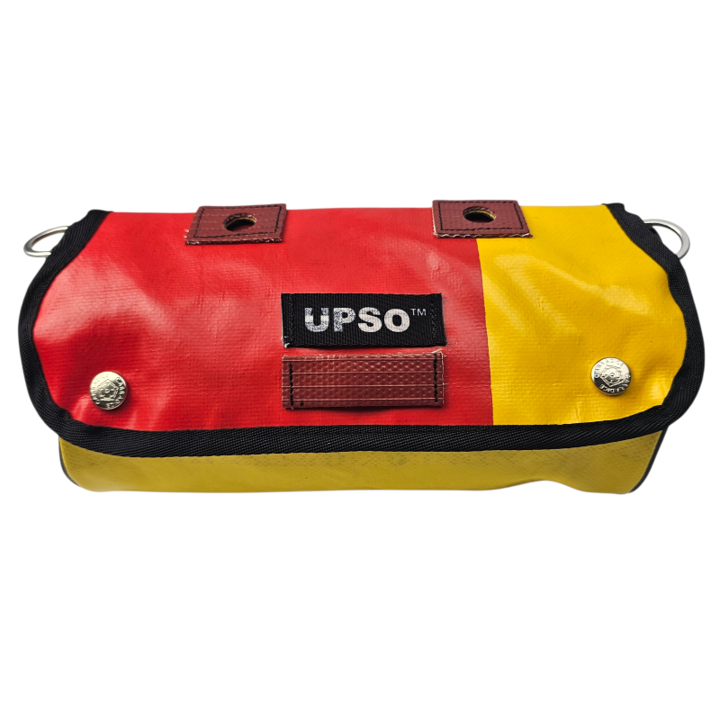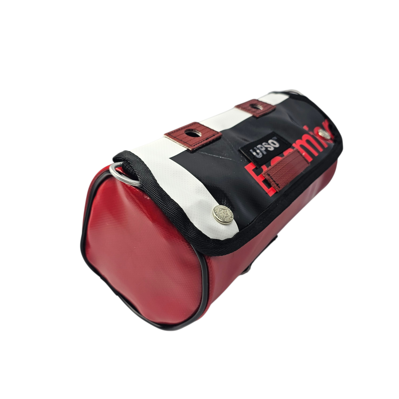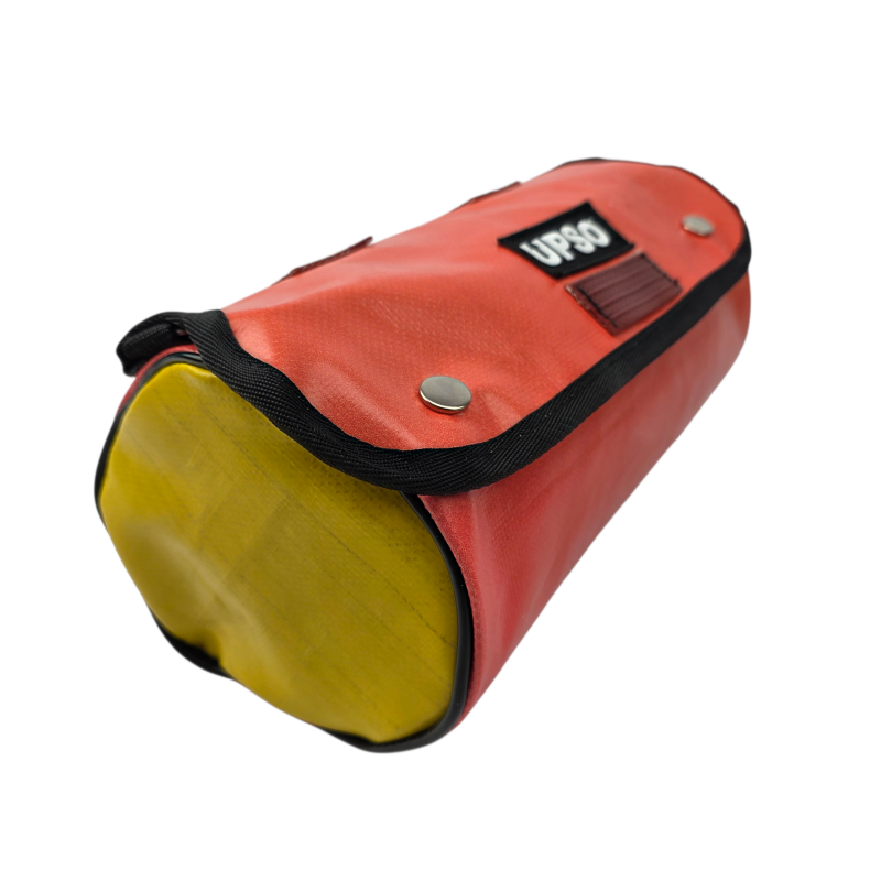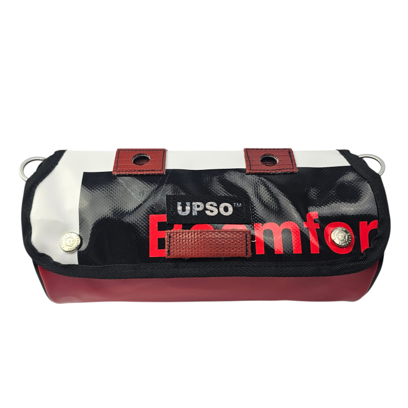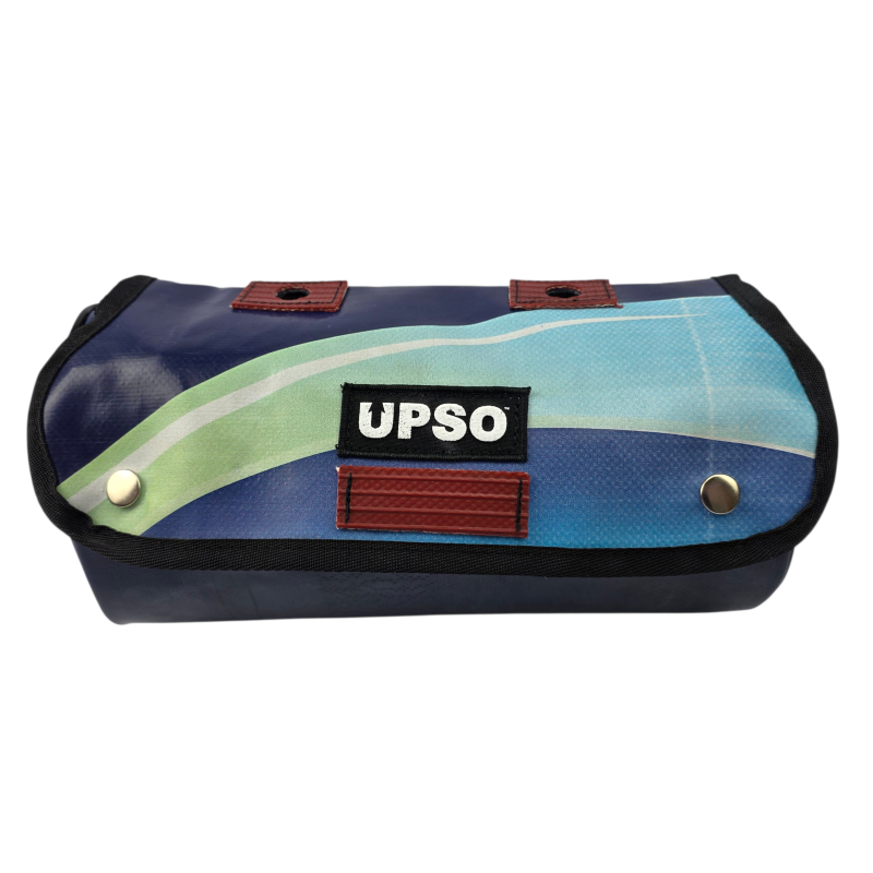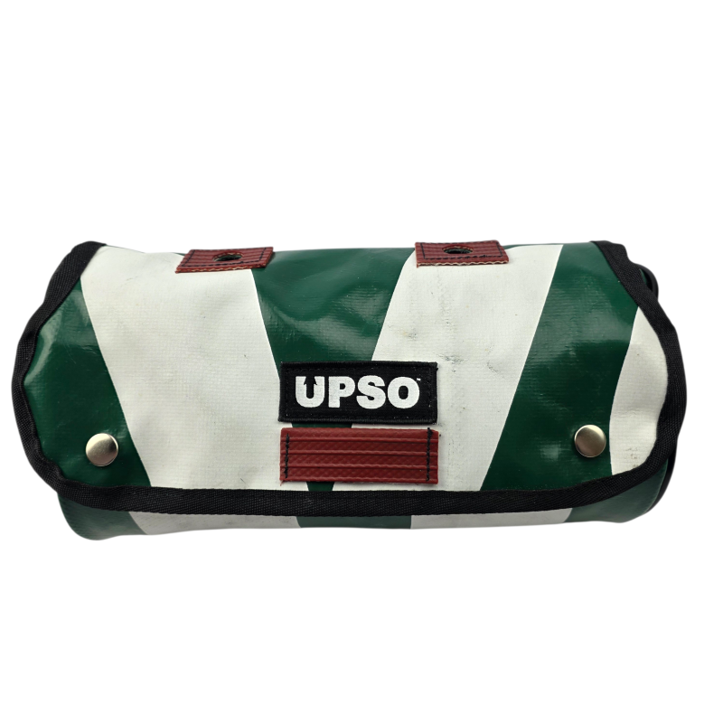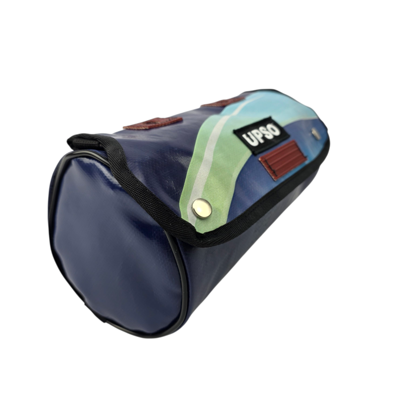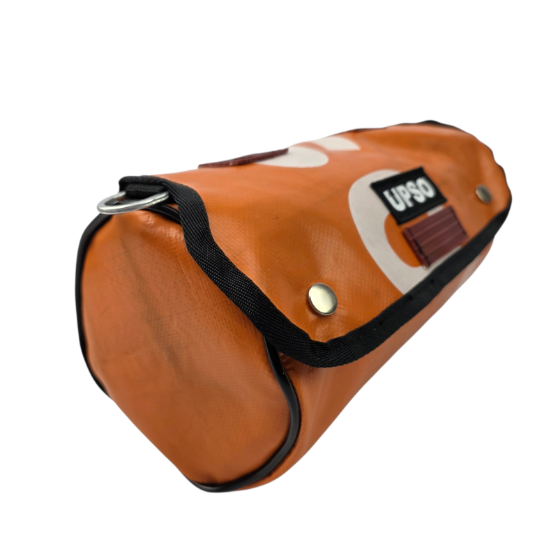Made from 100% upcycled truck tarp and fire hose, the Tamworth Tarp Roll is waterproof, ensuring your gear stays dry, while the tarp is tough.