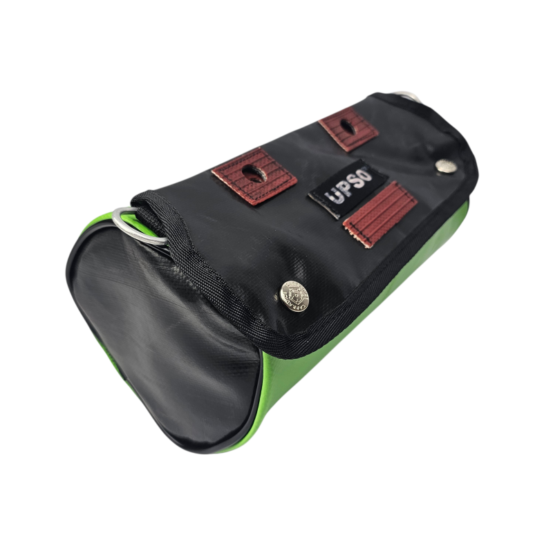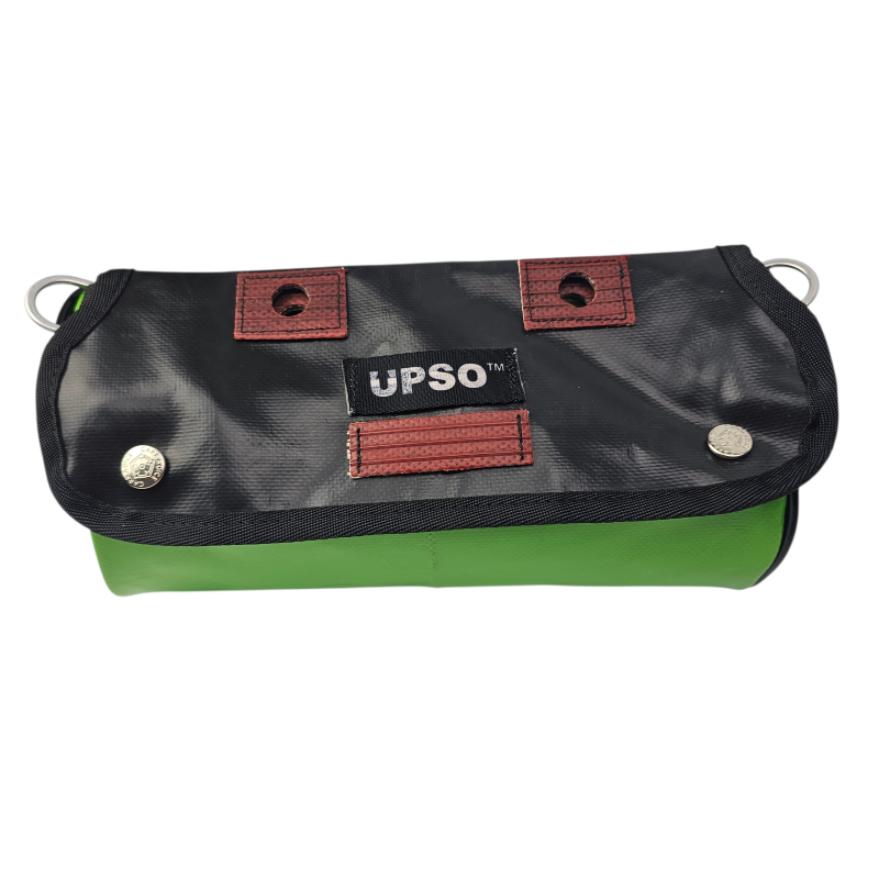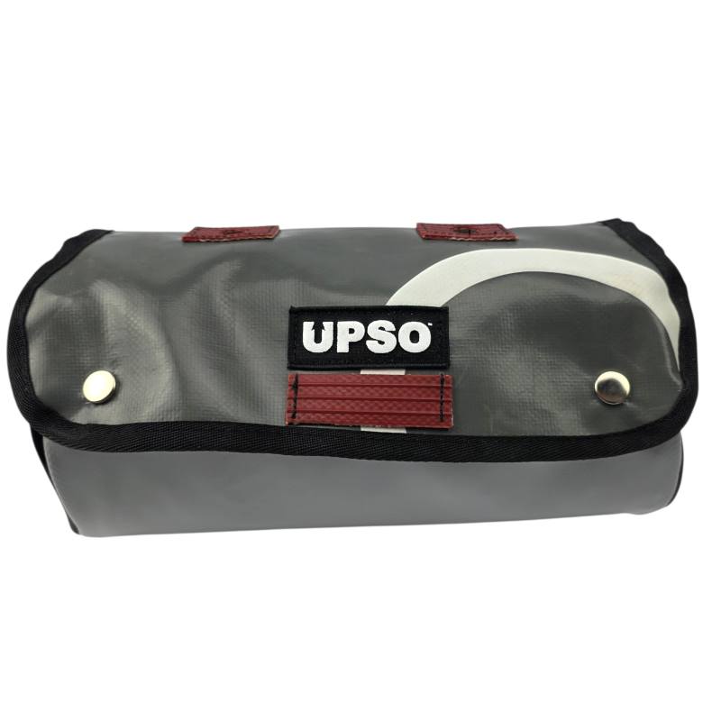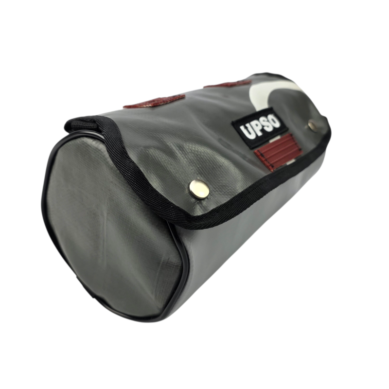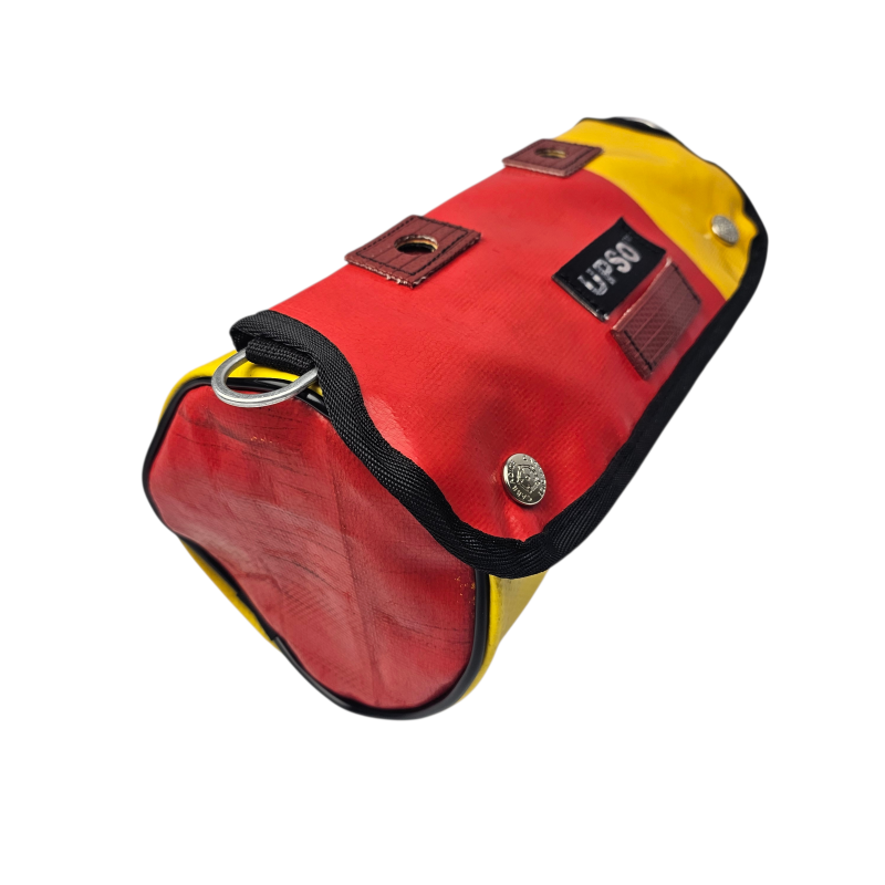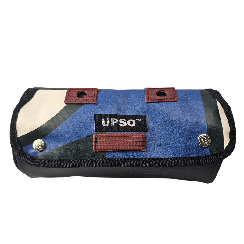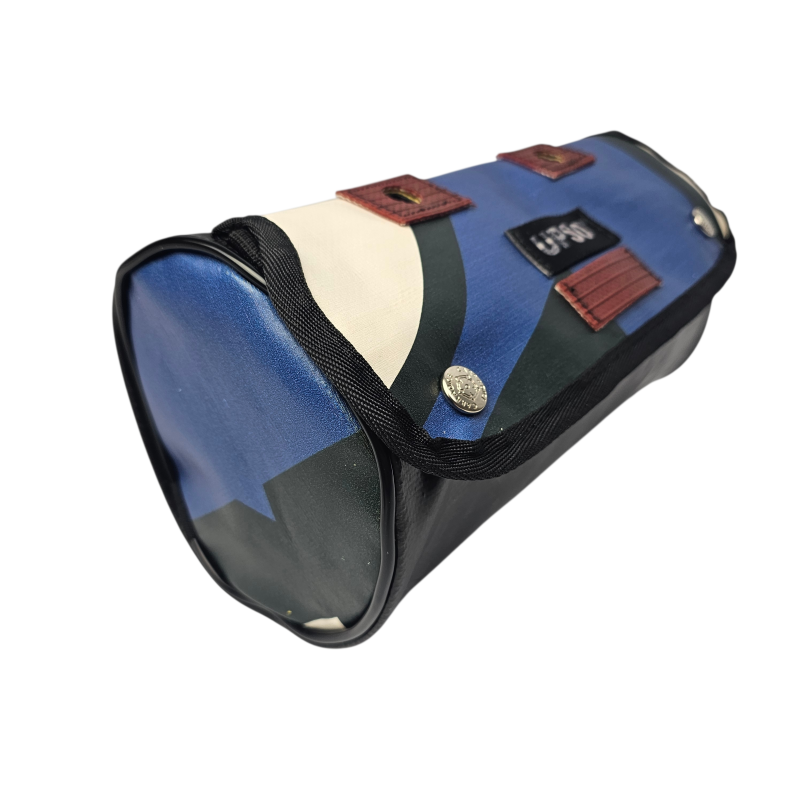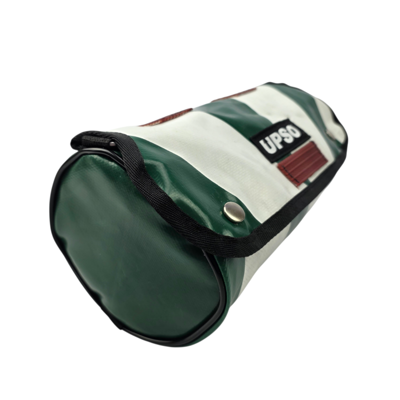 Made from 100% upcycled truck tarp and fire hose, the Tamworth Tarp Roll is waterproof, ensuring your gear stays dry, while the tarp is tough.