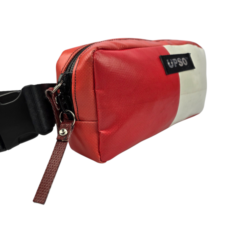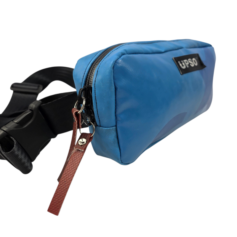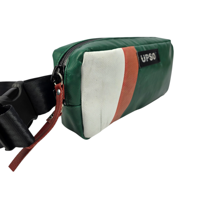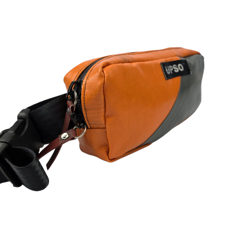 Made from 100% upcycled truck tarp and fire hose, the Woodhall Waist Pack is waterproof, ensuring your gear stays dry, while the tarp is super tough.